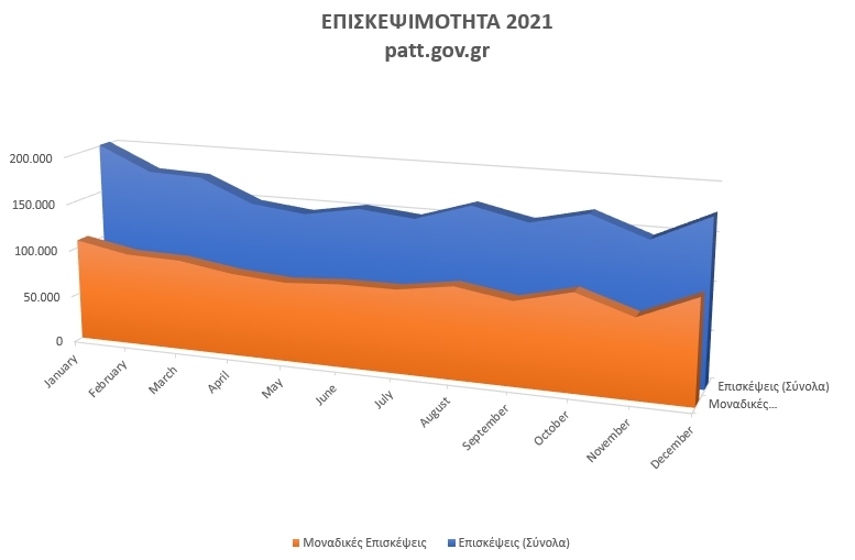 Επισκεψιμότητα patt.gov.gr έτους 2021 :